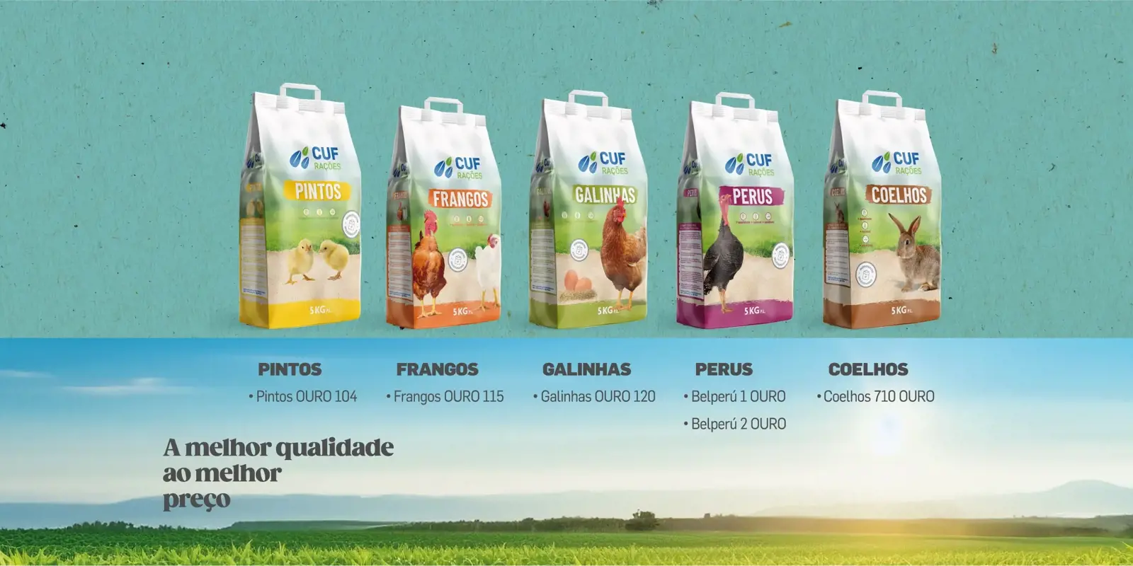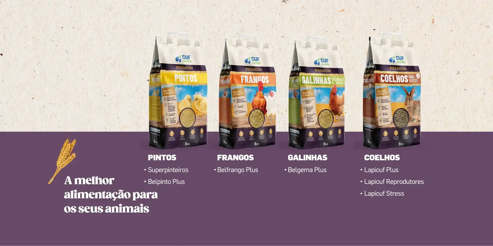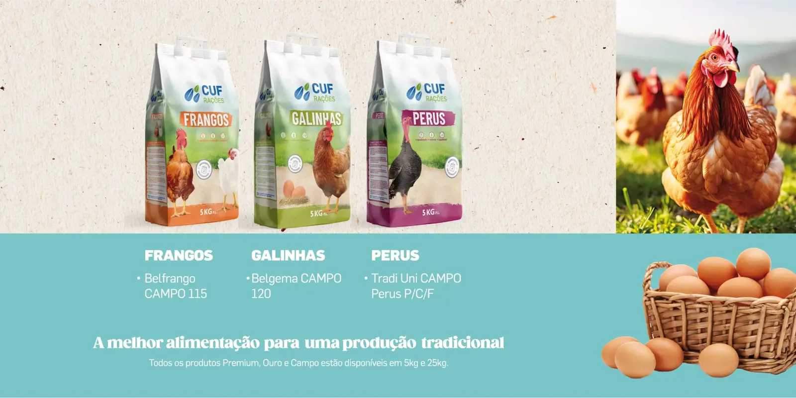 Linha de alimentos CAMPO, formulados por nutricionistas e veterinários, recorrendo ao máximo de alimentos naturais, para se ajustarem ao modo de produção tradicional, e complementarem a alimentação dos animais de criação.